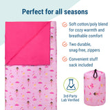 Drifting off to sleep is a breeze when your child is snuggled up in Wildkin’s Original Sleeping Bag for boys and girls! Each Kids Sleeping Bag is made from a super soft blend of cotton and polyester materials to keep your little one extra warm and cozy. The sleeping bag features a roll-up design, complete with elastic storage straps and a coordinating drawstring-close storage bag. Its travel-friendly design makes it easy for your little one to take their Sleeping Bag with them to-and-from sleepover parties, overnight travel to grandma’s house, and more. Each Sleeping Bag was designed to coordinate with other Wildkin gear. From lunch boxes, to duffel bags, to backpacks, your child will love having their favorite designs with them on-the-go. L: 57" L x 30" W.