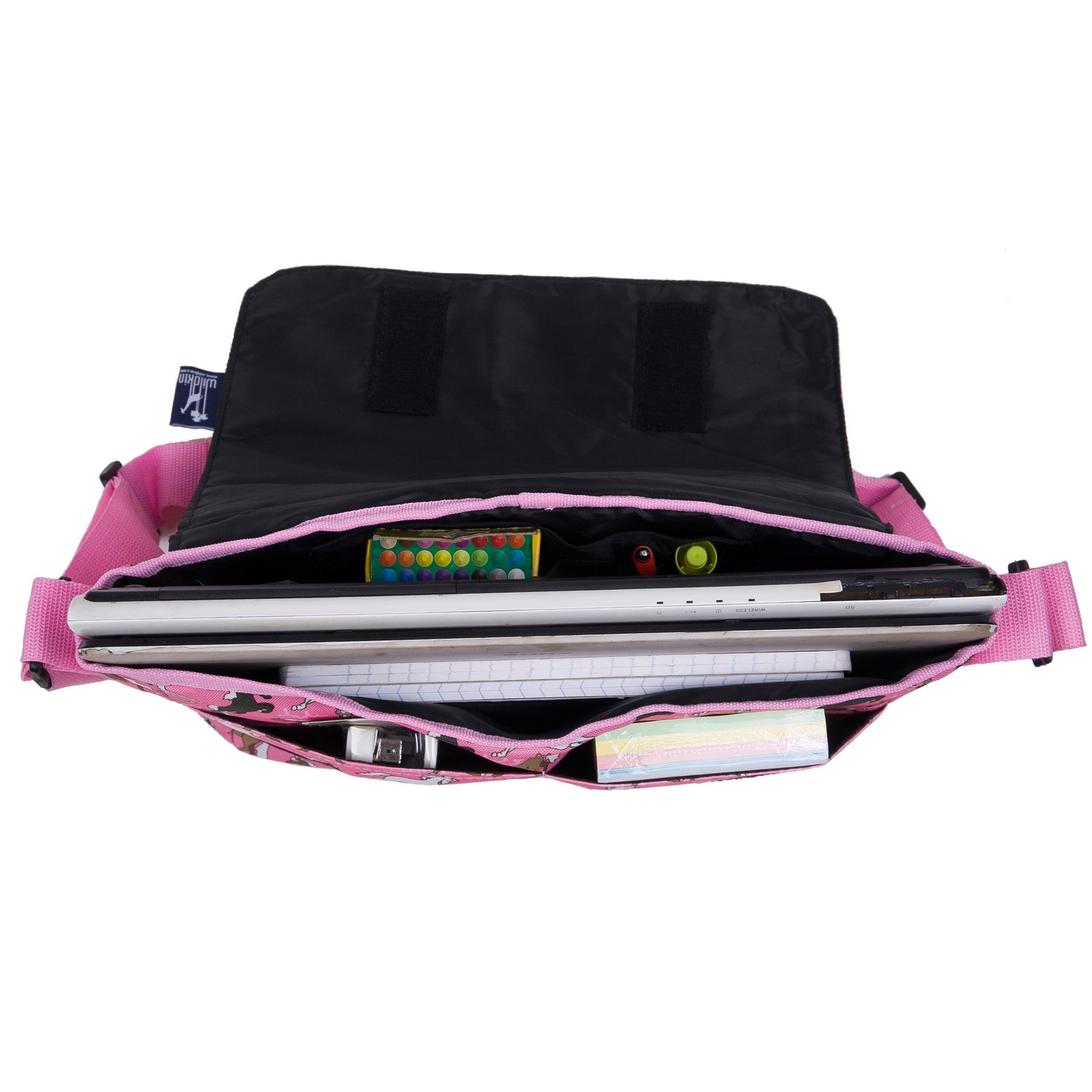 Your child will be the talk of the playground with the Wildkin Horses in Pink 13 x 10 Inch Messenger Bag for girls! This messenger bag features a padded adjustable shoulder strap, a spacious main compartment, two interior and exterior pockets and a convenient touch closure. The Wildkin Messenger Bag is made from sturdy 600 Denier Polyester. Can’t get enough of Wildkin’s awesome patterns? Each 13 x 10 Inch Messenger Bag was designed to coordinate with other Wildkin gear, so go ahead and make a theme out of it! From lunch boxes, to duffel bags, to sleeping bags, your child will love having their favorite designs with them on-the-go.