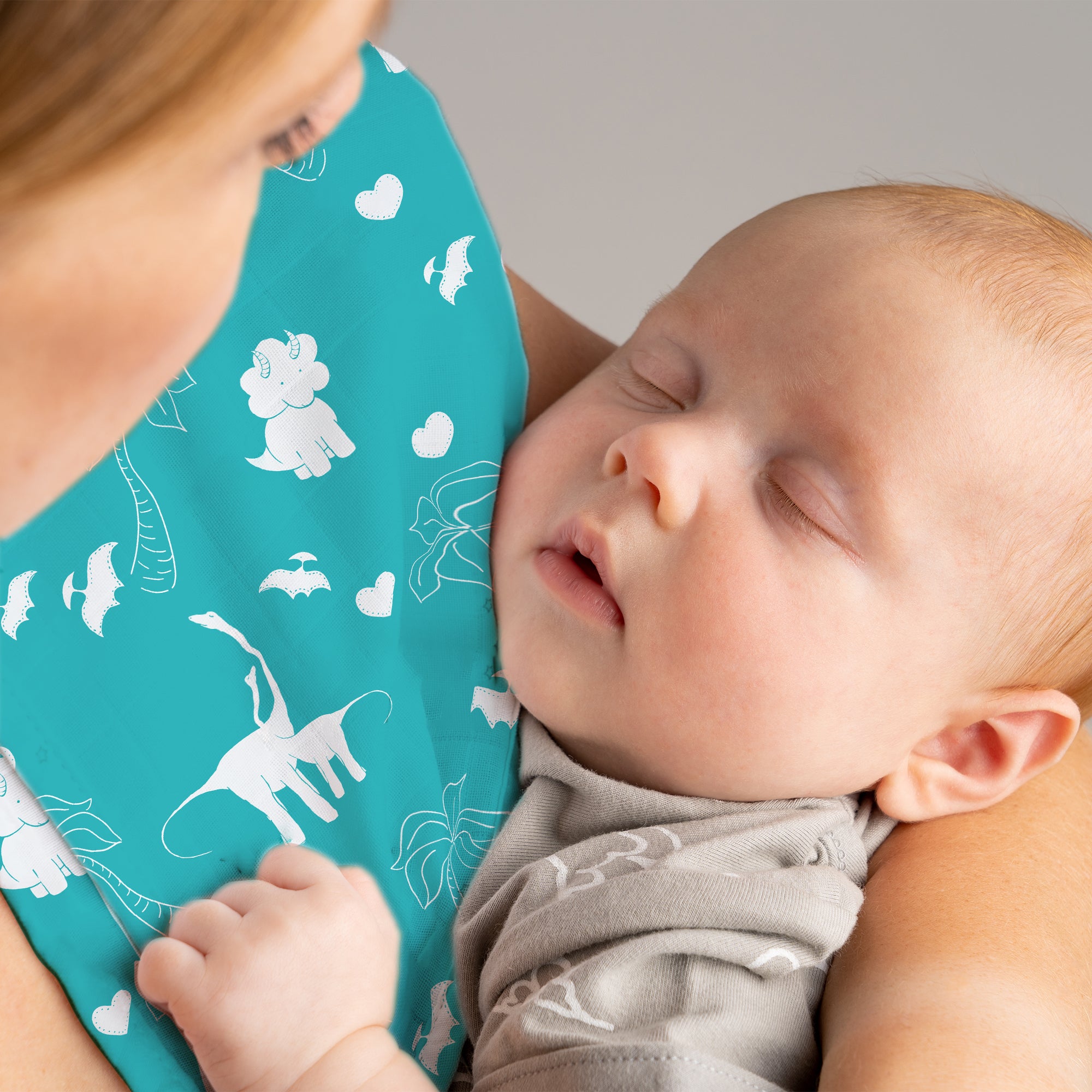 • 3 bibs (100% cotton with TPU backing, 2 patterns, 1 solid with screen print)