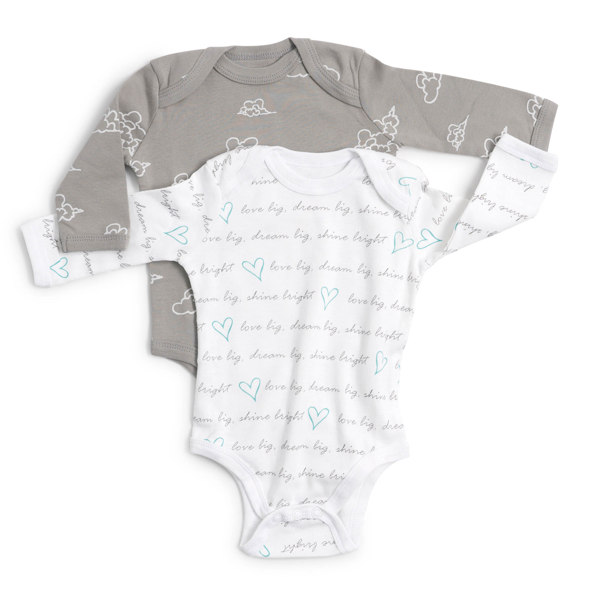 • 2 long sleeve onesies (100% cotton, 2 patterns)