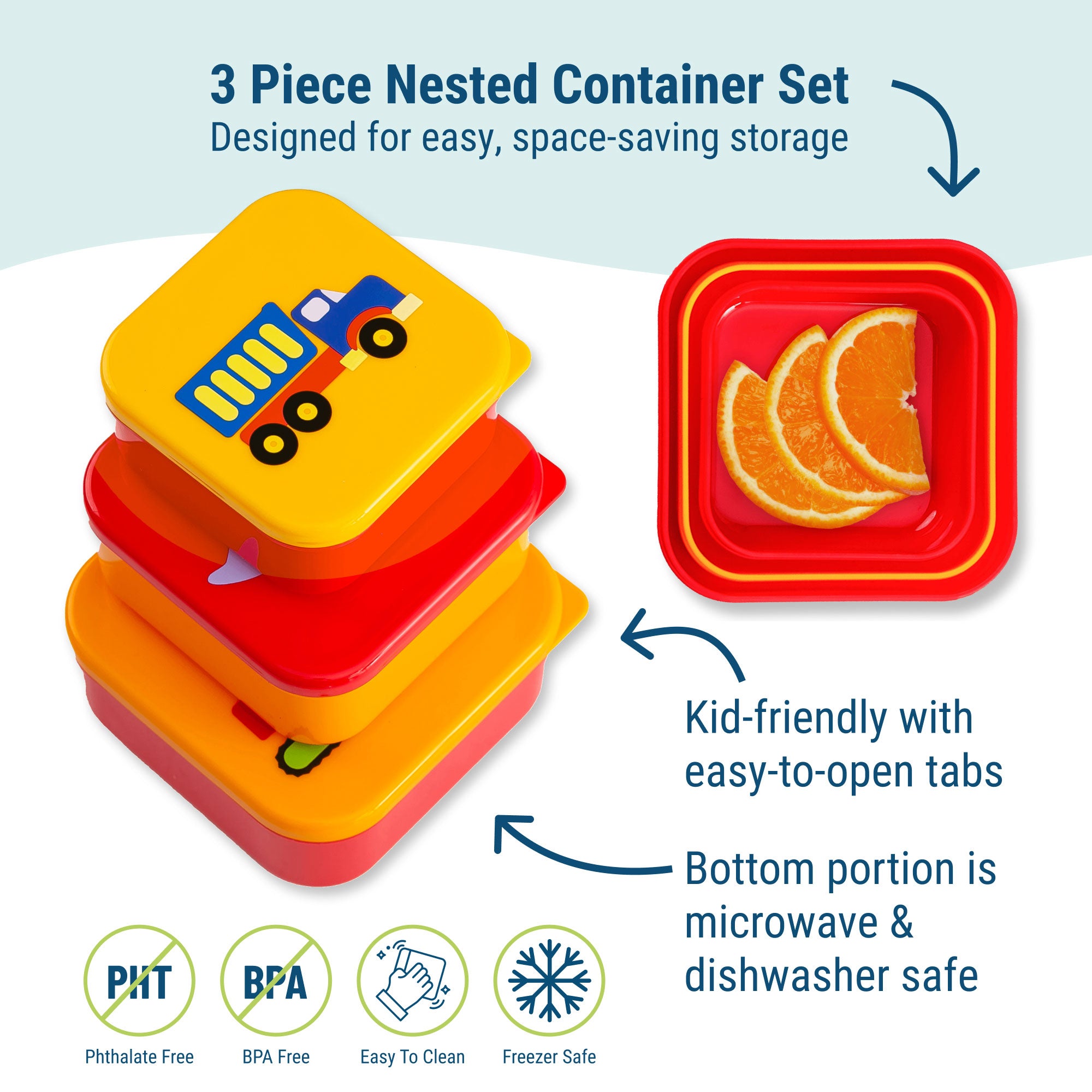 Wildkin's Nested Snack Containers are designed with both kids and parents in mind. With a Nested Design, parents will love the space-saving storage, and kids will be delighted by the Wildkin designs! BPA-free plastic makes Wildkin's Nested Snack Containers super durable and kid friendly.