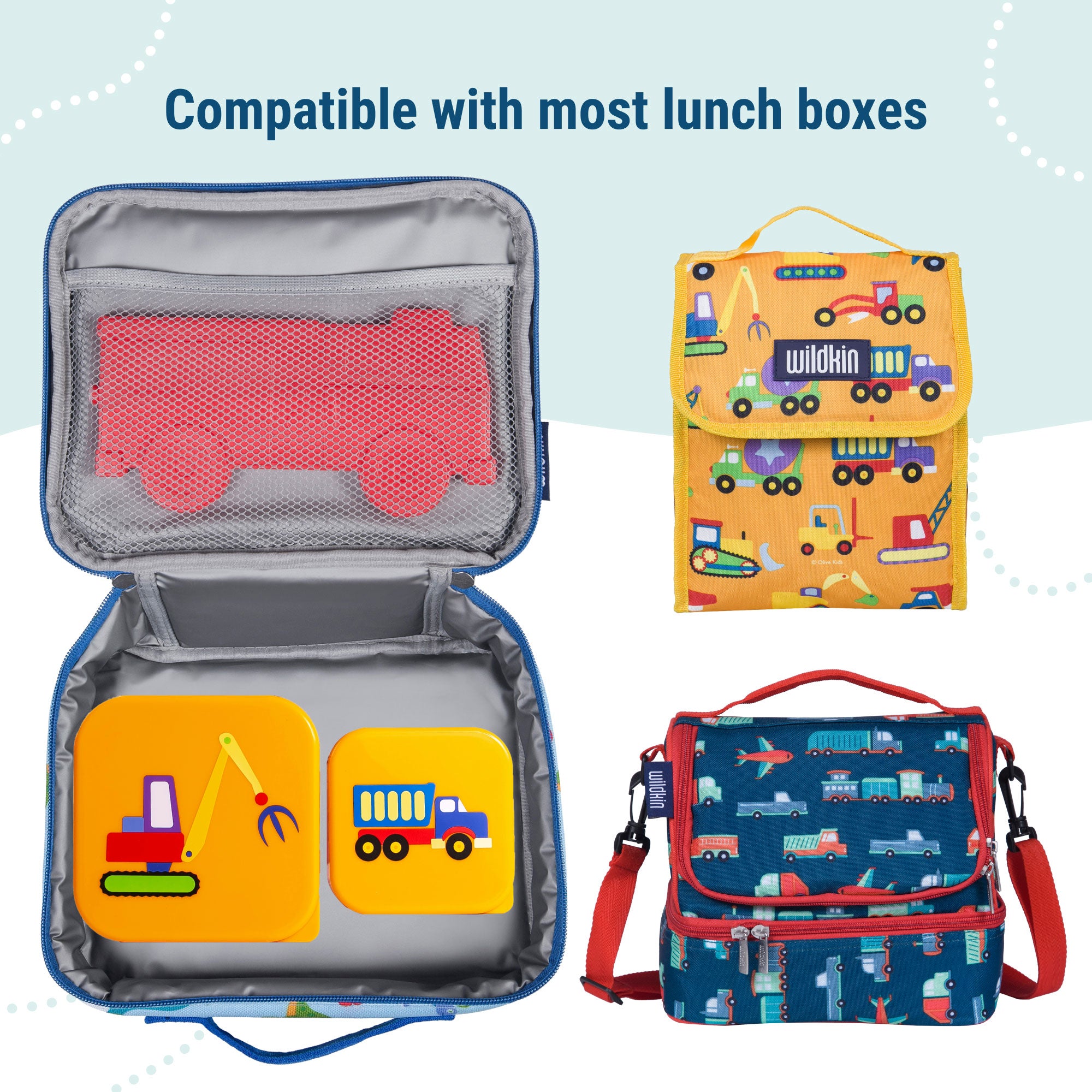 Compatible with Wildkin's Lunch Box, Lunch Bag, Eco Lunch Bag, Clip-In and Two Compartment (top or bottom compartment) Lunch Bags