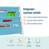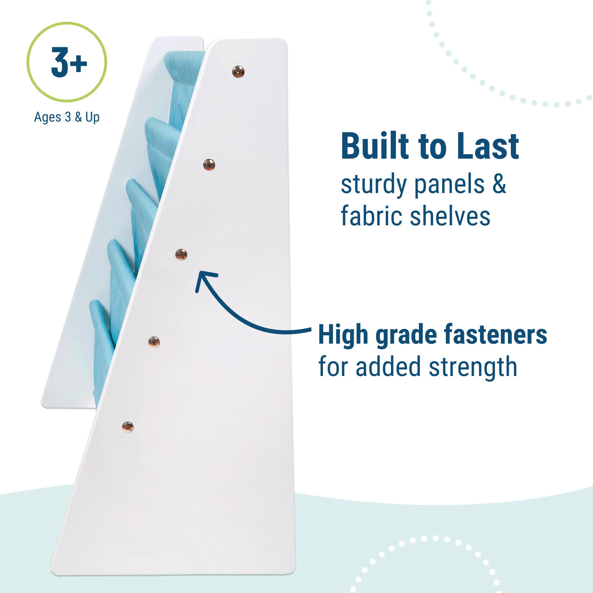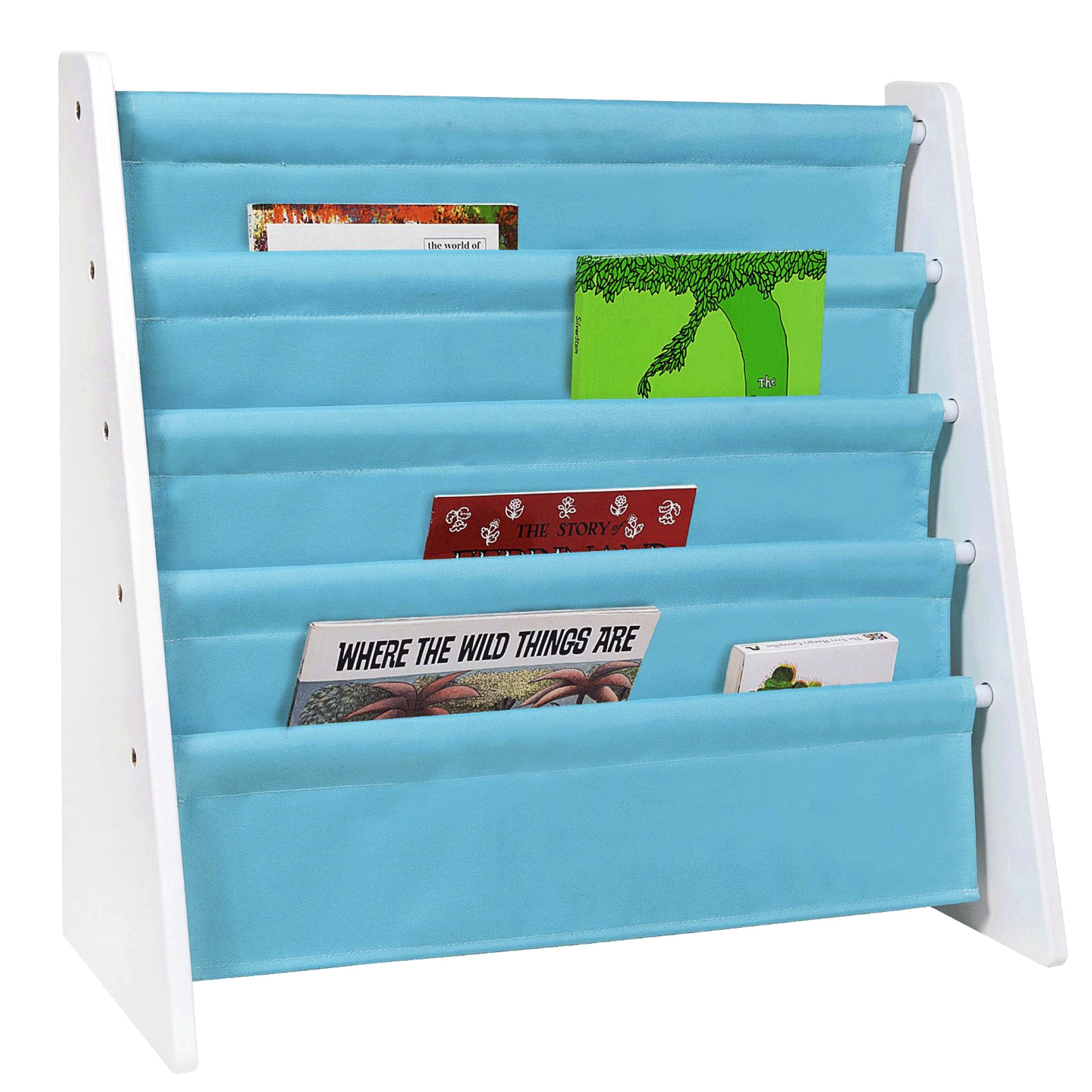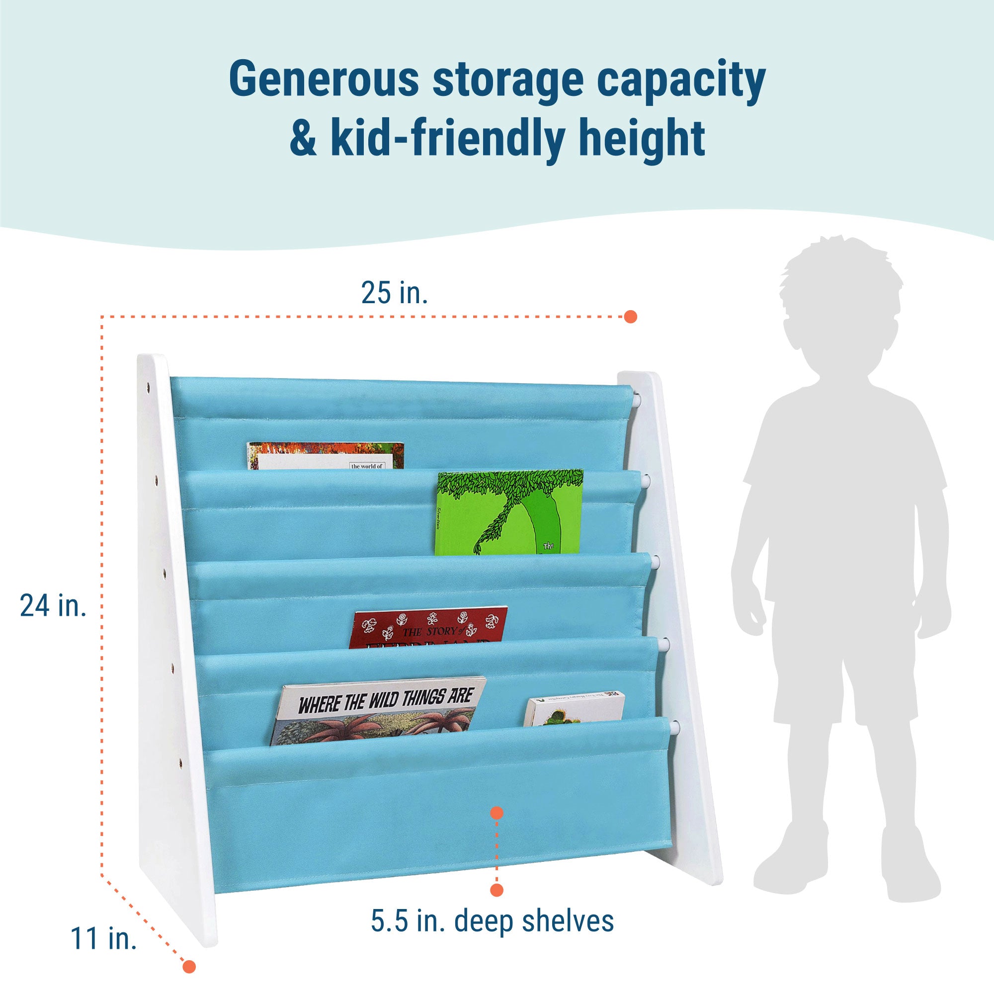 The Wildkin Sling Bookshelf is the perfect addition to any room! The sturdy wood bookrack with fabric pockets displays books for easy recognition by young children, encouraging them to read and then return their books for a neat and organized room. This bookshelf measures 25 x 24 x11 inches. Some assembly is required.